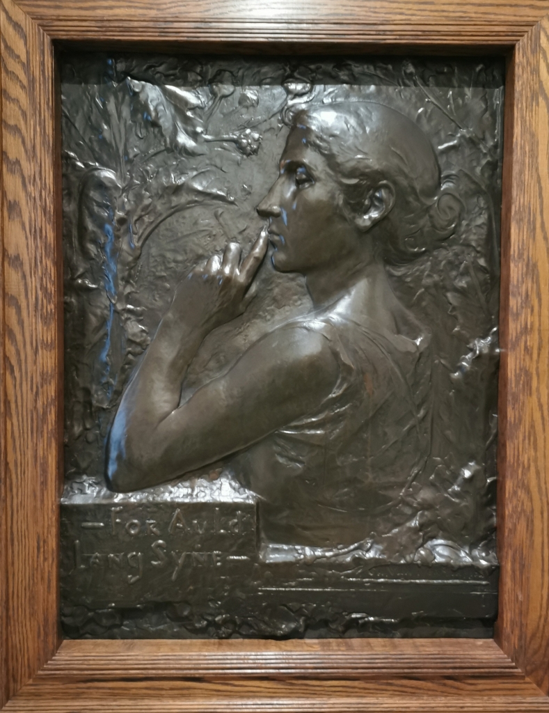 Avec son mystère, le sphinx a souvent inspiré les symbolistes. On retrouve le geste du doigt sur la bouche qui impose silence et méditation dans For Auld lang Syne, un bas-relief du même sculpteur. J’ignorais que ce titre reprend celui d’une chanson écossaise sur « Les jours d’antan », « plus connue des francophones sous le nom de Ce n’est qu’un au revoir » (Wikipedia).