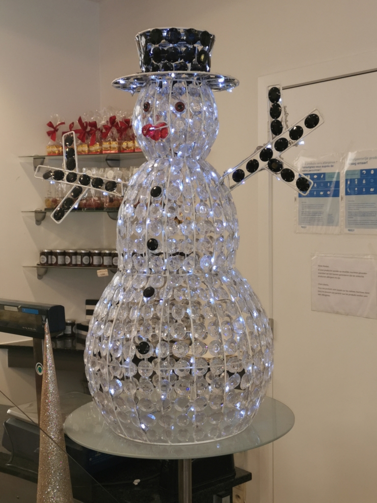 Avec ce joli bonhomme de neige d’un bon pâtissier chocolatier, je vous présente, chères lectrices & chers lecteurs – qui me faites le plaisir de commenter souvent ou de temps à autre, qui passez en silence, qui découvrez T&P ou qui revenez ici –,